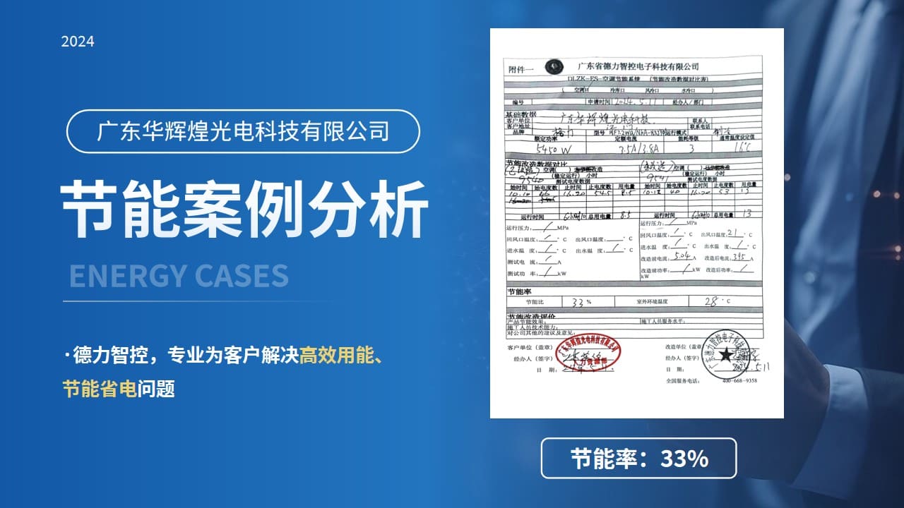 近日,德力智控成功服務了廣東華輝煌光電科技有限公司(以下簡稱:華輝煌光電)總部的辦公樓,為其量身定制了節能省電、綠色舒適的制冷(空調)系統節能改造服務。