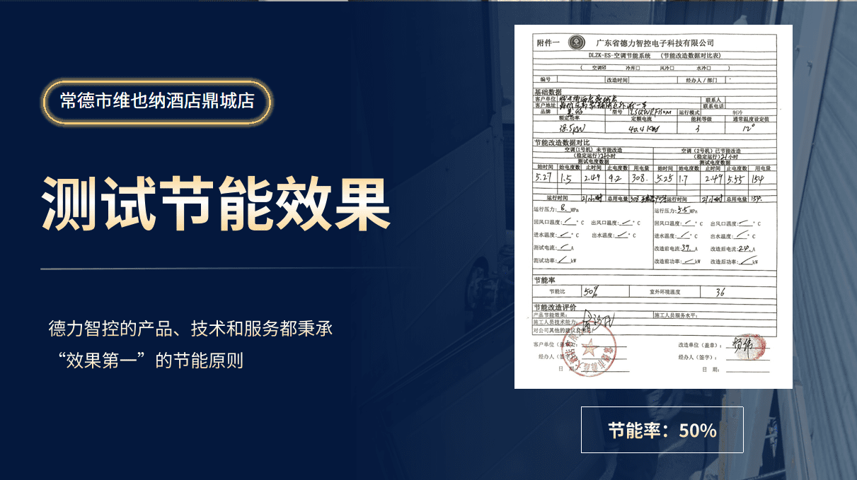 在進(jìn)行免費(fèi)打樣后,維也納酒店(鼎城店)負(fù)責(zé)人親自看到實(shí)際的節(jié)能效果后,選擇了與德力智控正式合作。
