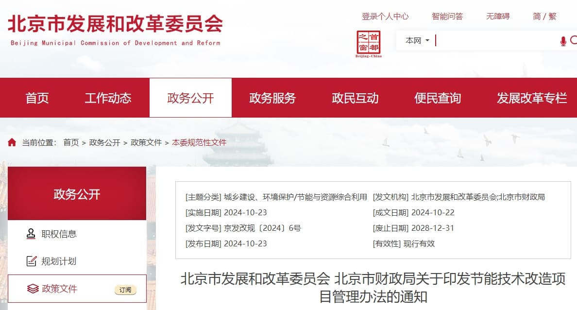 10月23日,北京市發改委等多部門聯合印發《節能技術改造項目管理辦法》(以下簡稱:辦法)。