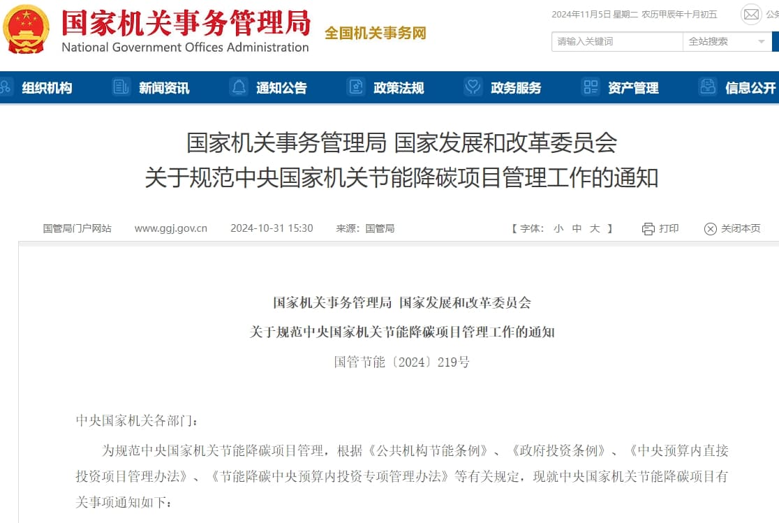 10月31日,國管局及發改委兩部門聯合發布《關于規范中央國家機關節能降碳項目管理工作的通知》(以下簡稱:通知)