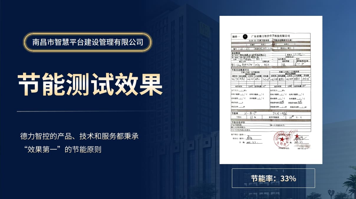 就以企業為例,德力智控近期為南昌市智慧平臺建設管理有限公司節能改造實地打樣,節能率33%,為行業又一次提供了技術典范!